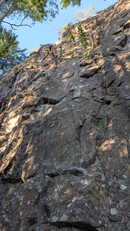 Ankaret mitt på väggen placerat förmodligen av E Kuiper 07. Reachigt i starten, svårare för korta klättrare.
