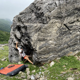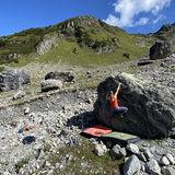 Local mountain guides opened some excellent bolted routes on the biggest boulder on place. They also did some bouldering around, but there were probably some activities before. At least Swiss climbing and bouldering legend Richi Signer touched the rock here decades ago as almost everywhere in Switzerland.