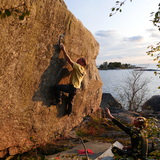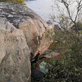 Docking the boat should happen in front of the wall. Parking marker is placed so that atleast 6m ht boat with 50cm draft can be parked there with long rope on the rear anchor. North/east wind might bring some problems and in that case it could be possible to dock also on the other side of island where no houses are nearby. Land is owned by the state and its used by Finnish defence forces sometimes but there are no continuous restrictions about using the area for normal hiking/bouldering activities.
