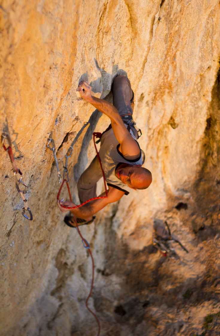 However, those not daunted by these facts can enjoy amazing exposed climbing in a spectacular location. Strofes is the kingdom of mid grades. Routes are long and pleasing but rather sharp, generally starting on big tufa features but quickly threading their way upward on crimpy vertical walls. Strofes (“Turns” in Greek) is a climber-derived name inspired by the numerous u-bends on the road passing below the crag.