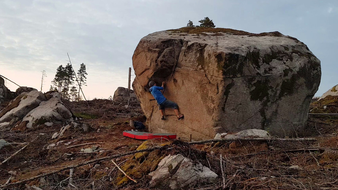 A couple of boulders close to the road in Strömby. Warm up on some of the easy problems and then send the lightly overhanging "Untergriff" which requires strong fingers for the crimps in the small crack and good foot technique.