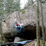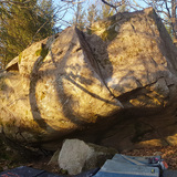 Two boulders with fun overhanging problems with various cool holds and good rock quality. There are also a handful of simpler slabs.