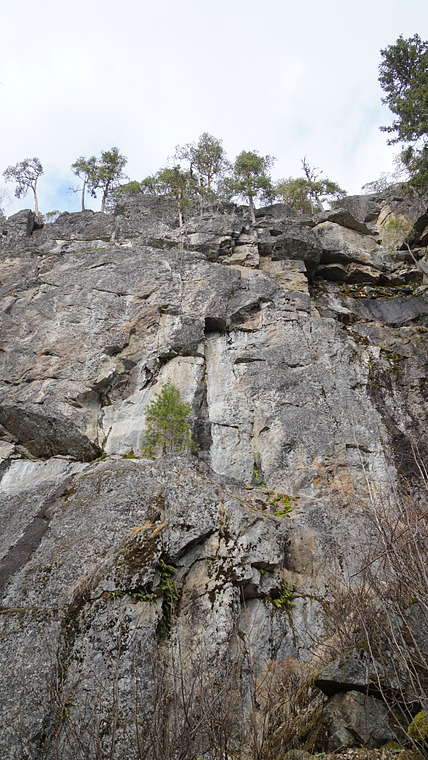 Börja med ett hörn och vidare uppför en skiva till en hylla. Klättra något åt vänster och sedan rakt upp i en tak-hörnformation. Sedan är det bara att friska på uppför den mycket branta väggen. Fortsätt från den från sista bulten upp. Ta sedan ett bra grepp långt ut till höger och sedan är det bara att hiva sig upp på hyllan. Gå rakt över hyllan och in i en stor sned spricka i taket. Klättra upp i sprickan och sedan vänster ut på väggen och vidare rakt upp till toppen.