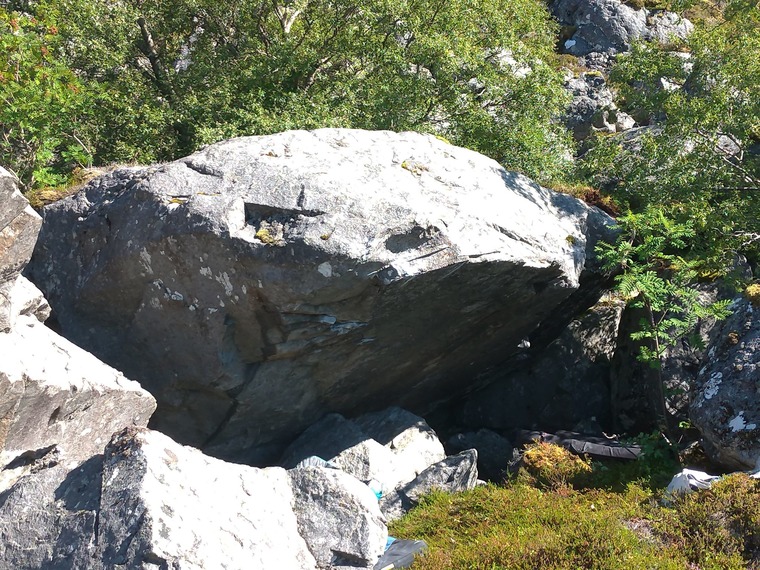 Fin! Kult overhengende problem med relativt mange flytt. Direkte mantling er verre enn det ser ut som. Vanskelig å gradere. Kanskje mulig å starte ett lite hakk lengre ned.