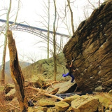 The Sunshine Boulders might not be the biggest or most concentrated area, but remains a staple of the Fayette Station loop. The classics packed into its handful of boulders makes it a must-hit spot. "Helium" V3, "Sunshine Arete" V5, "The White" and "1, 2, Punch" at V7, and "The Black" V9 are all some of the best of their grades at the New. There are many other great problems here as well, sitting in the shadows of their exceptional neighbors.