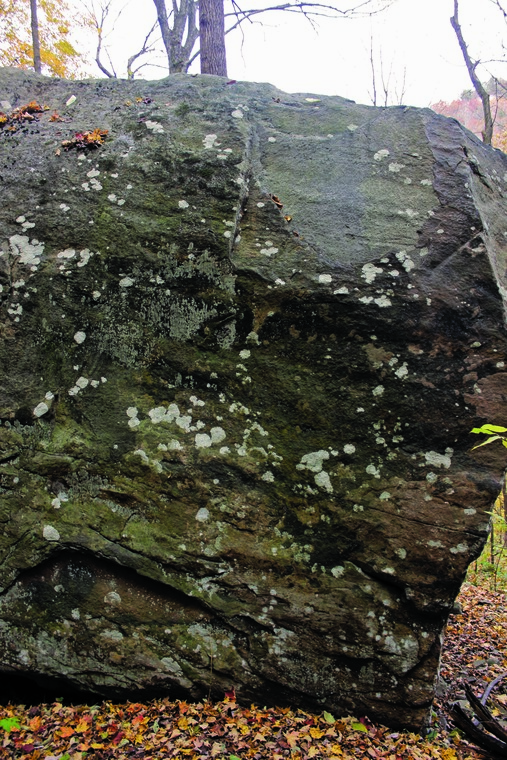 Start left of the arete with a left-hand undercling and the right hand anywhere on the arete. Follow the arete and left face to the top. Power slab.