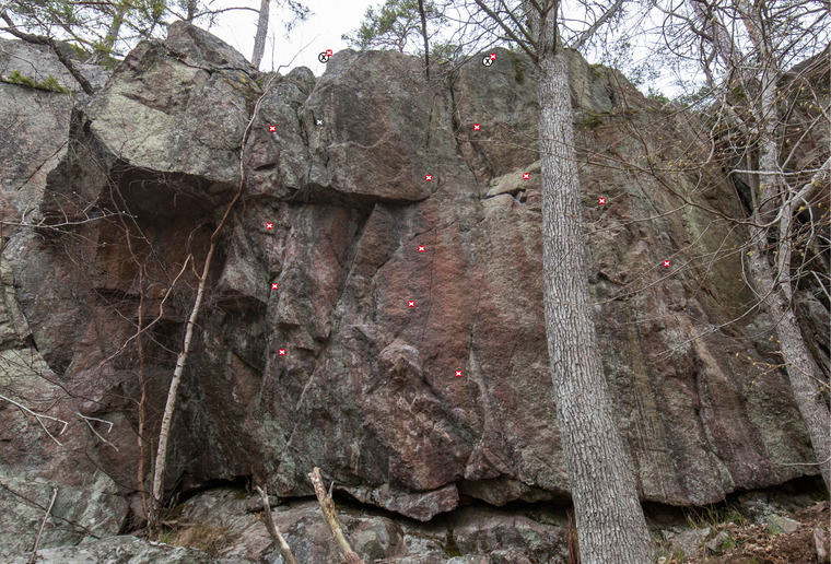 Uppvärmningen som blev projekt. Inte helt trivial och lite läbbig travers med träd strax bakom. Men väl värd att klättra om man inte vill hänga i taket.