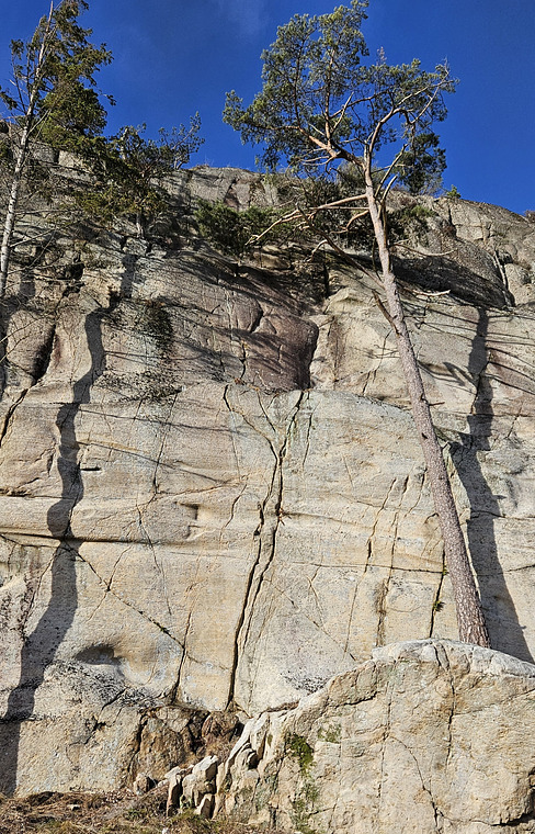 The first route established on the crag. So far the longest route at the crag. Lots of climbing with some interesting difficulties, a route not to miss. Obvious start in the cracks leaning slightly to the right. From the shelf move up in the thin cracks on the left side and continue straight up to the top.