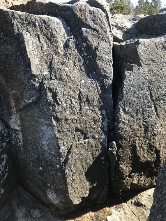 Sittstart med 2 underclings, likt ett marklyft. Utstickande stenarna från sprickan är ej med i problemet