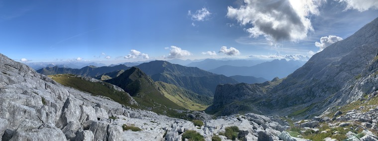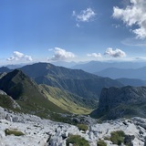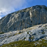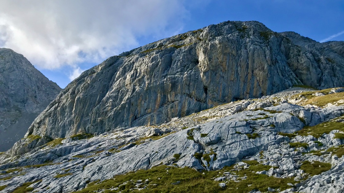 🇬🇧 Crag in yellow/gray limestone, characterized by a lower part that varies from vertical to overhanging and a more leaning upper part, located between the Vallone del Ploto and the base of the Cima di Mezzo (hence the name) at an altitude of about 2300 mt with southern exposure in a fantastic landscape context. The route names are inspired by the Lord of the Rings saga.