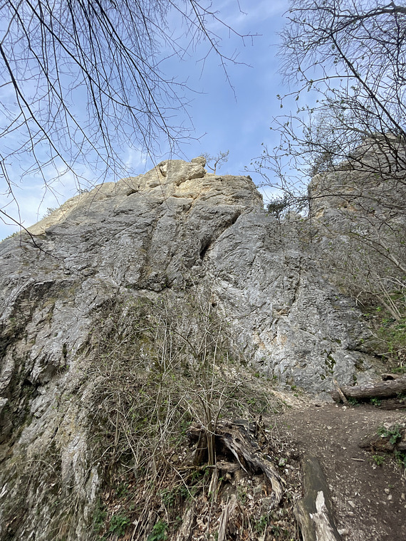 Einstieg am Beginn der Verschneidung, die eine unangenehme Unterbrechungsstelle hat. Nach links und über die Crux kraftraubend zum Umlenker.