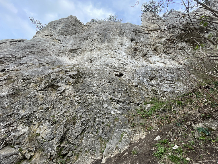 Schön zur Crux (kleine Leiste und weite Züge); plattiger Ausstieg.