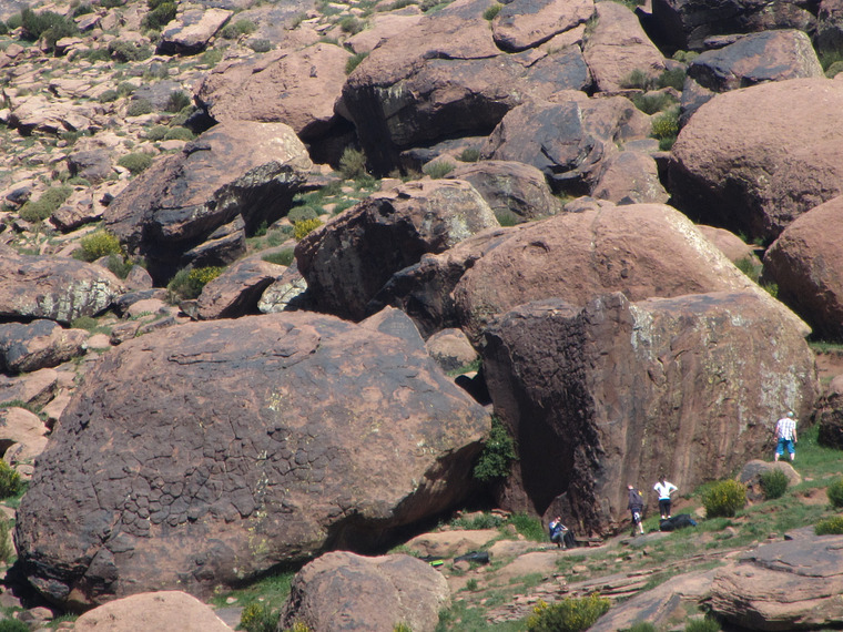 Stand start on right side. Follow the line of good holds, stay left of arête and top out right of iron bars at the top. Variation: on the same face when you follow the small crack line up the diagonal line to the left. Like to improve the app? Make same pictures of this Boulder.