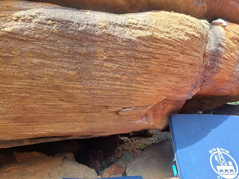 Low start to Ginger Shit, starting on jug flake and climbing through the first footholds of Ginger Shit.