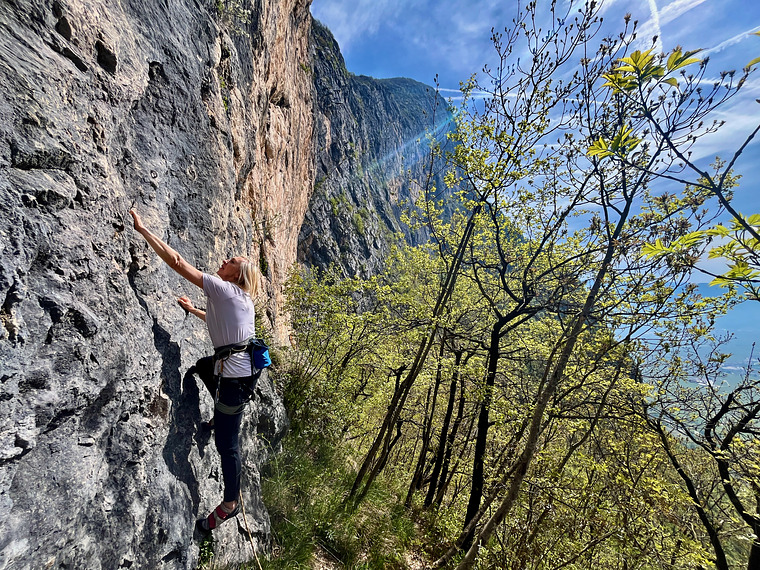 Named after a breathtaking panoramic point along the trail, Tor di Visione offers a unique view over the vineyards and fields of Mezzocorona, a fitting introduction to a crag that blends beauty with challenge.
