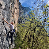 The wall hosts 15 routes ranging from 6a to 7c+, with a climbing style that’s technical and sustained. Expect elegant moves on long vertical faces, with some slightly overhanging sections. The reddish limestone is solid and untouched by polish, offering great friction. Some lines stretch up to 30–35 meters, so come prepared with a long rope and a good dose of endurance.