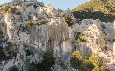 A few sectors with short routes (7-15m) on sharp rock. Facing mostly East.