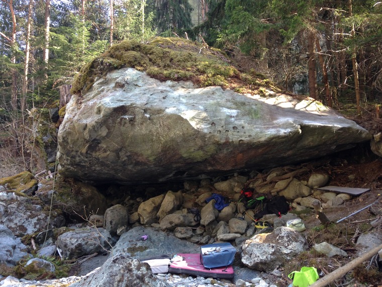So happy to find a boulder like that! This boulder will be a classic in wallis, really pure rock. Grade need to be confirmed.