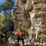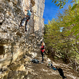 The rock is limestone, not always perfectly compact. Climbing is mainly technical on vertical faces with crimps, occasionally interrupted by small roofs that require more strength and power.