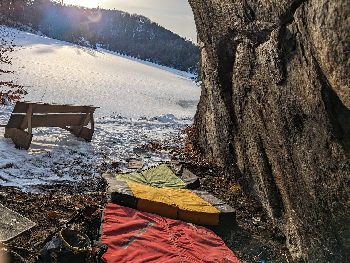 A fantastic climbing spot for the summer months, as many of the climbing areas are located in the forest, with several having cave-like formations.