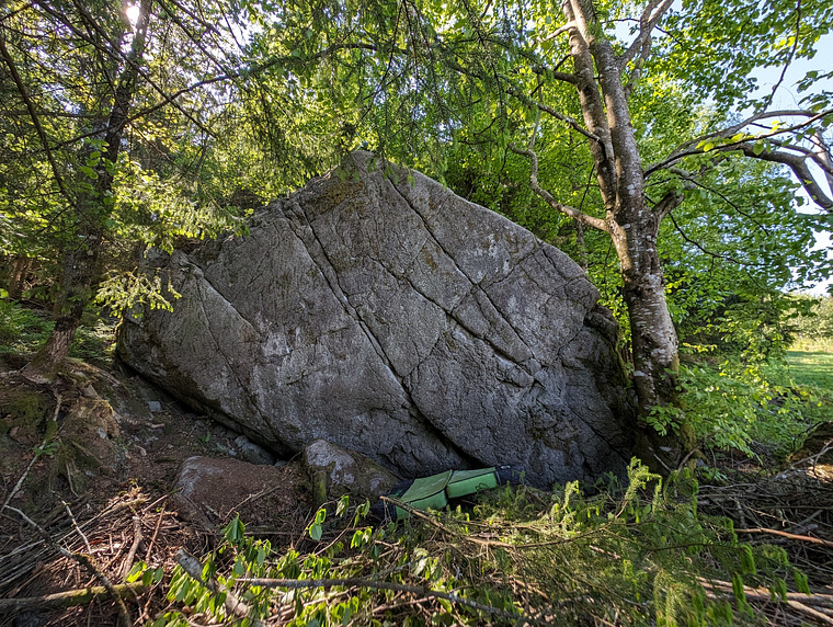 Left hand undercling. Right hand arete. Exit halfway out on arete