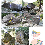 운일암 벌더는 계곡 볼더러 질감은 사암, 진안읍에서 차로 약30분 거리의 오지에 위치하지만 도로에서 접근성이 좋고 볼더를 찾기가 쉽다.