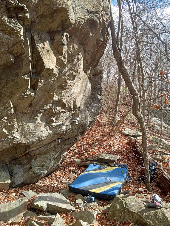 On the far right side of Magic Mountain is a small amphitheater. Start on the obvious jug and climb right on small edges until you can top out the feature. To just to the right is an easy down climb or cont. to the top.