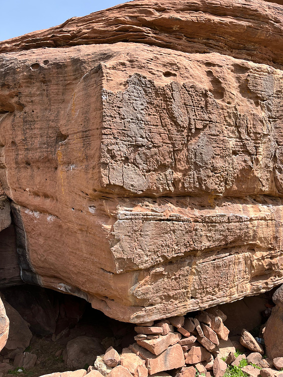 Same start to ‘Purity’ but due to the start hold breaking, it makes for a much harder intro move. Follow the pockets for a very direct finish. The features on the right are not in until you meet the top where you exit right.