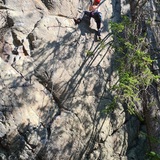 A rather nice sport crag located in a wooded but still kind of cosy environment 3 km south of the popular motorbikes café at Rosenhill. This 35-meter-long and about 15 meters high wall is mostly vertical or slightly overhanging. The rock quality is generally solid, but sometimes a bit slippery as well. The style is varied with overhanging crack lines, bulgy formations that are hard to read, and some ordinary face climbing. The routes are well-equipped although you might have to take precautions when clipping some of the bolts.
