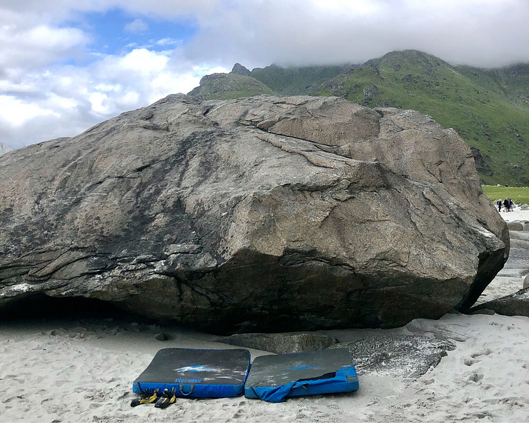 Ss. Right hand on the obvious hold, left on the arete. A two move mini overhang.