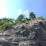 This sector is housed in an old abandoned quarry, suitable for the summer periods with the wall that goes in the shade from 1pm. Climbing almost exclusively on a supported slab and some vertical sections, all on small notches or using the coring holes. Requires good use of the feet in adherence.