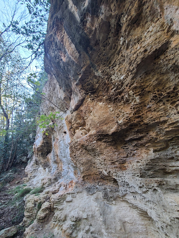 Hardest line of the sector. Starts on vertical wall, then overhanging with decent holds.