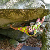 The grey-greenish boulders are all located tightly together in a small but dense area with an unusual amount of steep climbs. Another great feature is the compact rock devoid of sharp crystals, which allows for more climbing with fewer bleeding tips! The majority of the climbs are not very tall, although there are a few exceptions and the landings are good despite the otherwise uneven terrain.