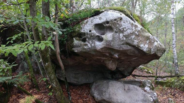 Lying start on the boulder. Finish with huge pockets. Pedestal boulder is obviously not in.