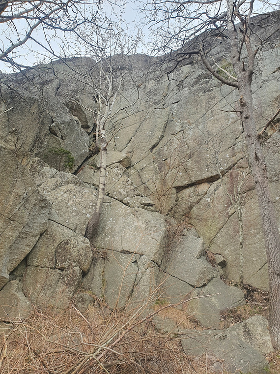 Ring anchors at the top. Good beginner route and for toprope as well. Another ringanchor further in makes it easy to access the anchor from the top.