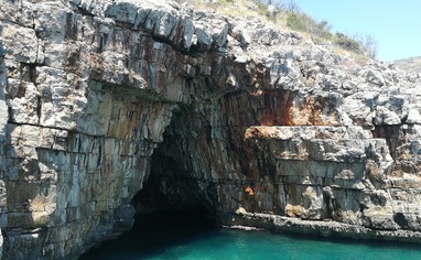By boat. Kayak or sup from Veslo beach.