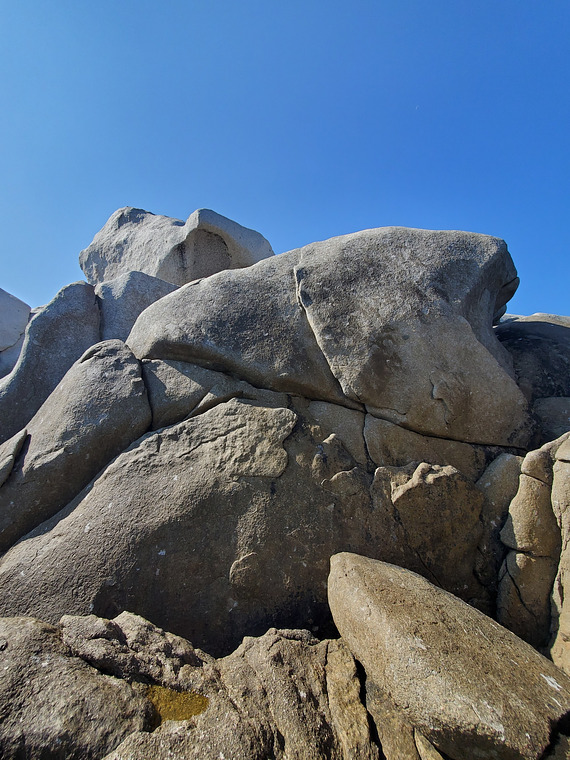 stand start, straight up along the flake, top out. quite high (highball). when you are at the top you can jump across to the opposite block to get down.