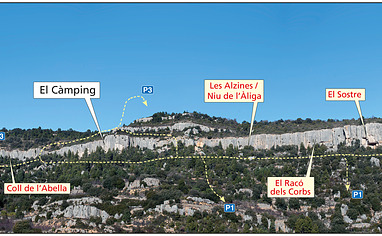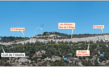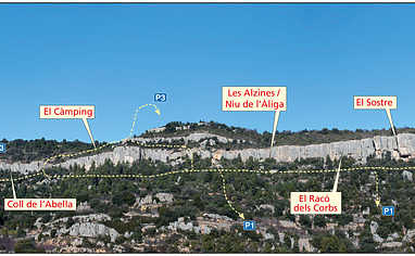 the sectors constituting the main part of the zone are situated on the long, continuous line of cliffs overlooking the village. A driveable track runs eastwards below the cliffs then back westwards abo... Read more