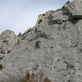 The crag is exposed to the Tramontane north west wind. When it blows, it blows hard!