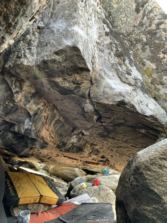 Var egentlig gira på å starte definert start i dobbel undercling til venstre, også klatre opp via fin pinch, men kjentes hardt ut. Ble litt rar sitstart istede.
