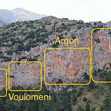 In September 2000, the local mountaineering club EOS Tripolis funded the development of the Voulomeni sector. Nikos Hatzis equipped the crag during a climbing school organized by EOS Tripolis.