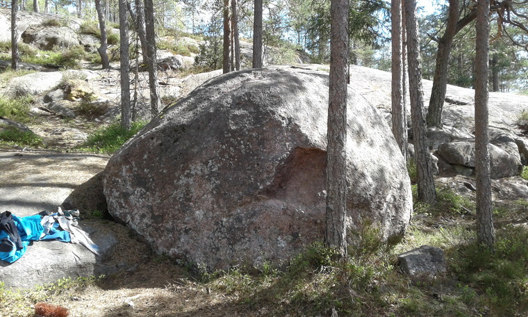 Aloitus kädet reittimerkin kohdalla rinnakkain. Poikkari oikealle nihkeillä slouppereilla ja toppaus oikean släbin puolelta Hyppykiven' topåpiin. Älä däbää puuhun.
