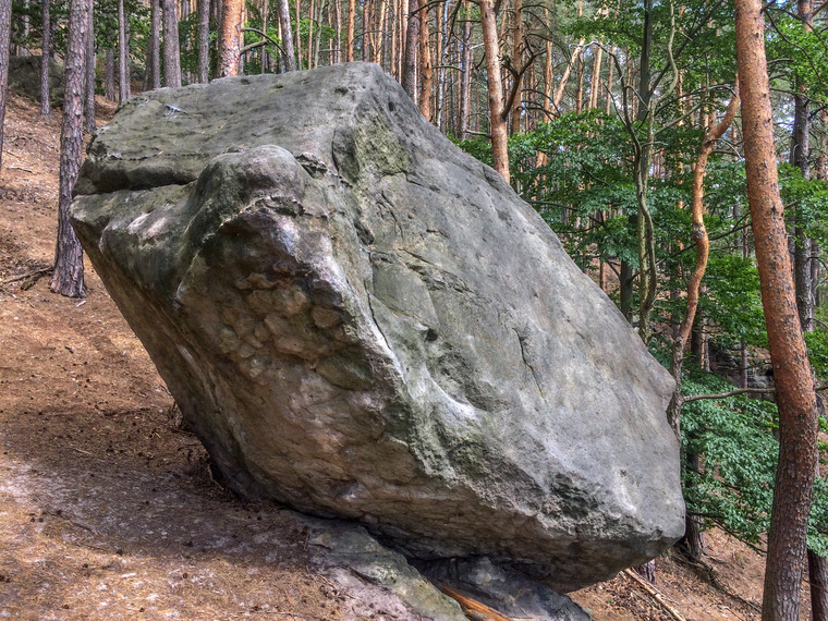 Ze stoje (levá boule, pravá bočák), plácáním převislého kýlu doleva a nahoru.