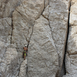 The routes here are a mix of sport and traditional climbs. Many of the bolts and anchor stations situated on the face of the dry waterfall have been smashed or warped by falling rocks during periods of flash floods. The trad placements are often creative and sketchy. Wearing a helmet is an absolute must! Be prepared for anything!