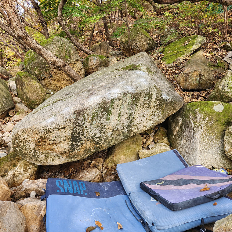 오른손 루프 아래 크림프 홀드, 왼손 제일 좌측 좋은 홀드 잡고 트레버스.