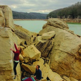 At 1612ft, all boulders but Brianna's Jugs Boulder, Fistful of Figs Boulder, and Calling Card Boulder are out of the water and all of the described boulder problems are climbable by the time the lake level is down to 1586ft.