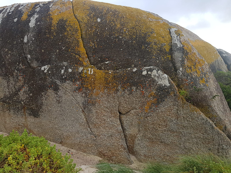 Us the rail and crack to exit the boulder.