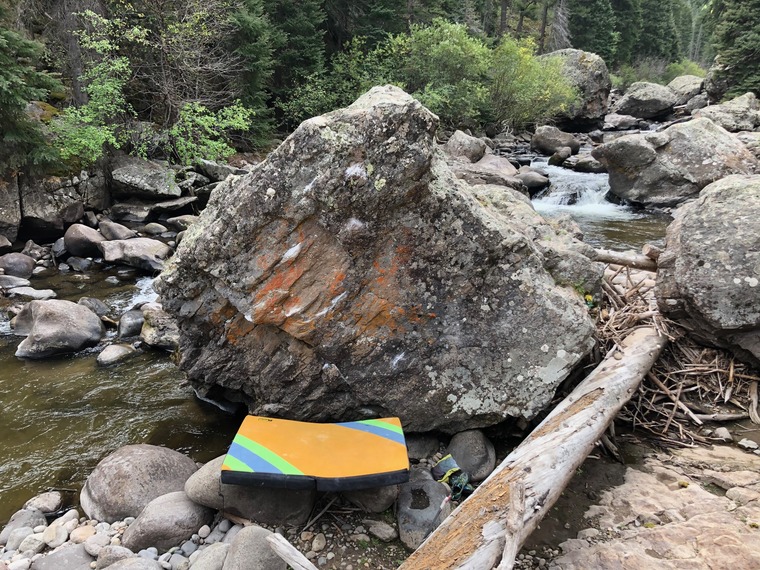 Sit start matched on the huge jug and go up through the orange streak.