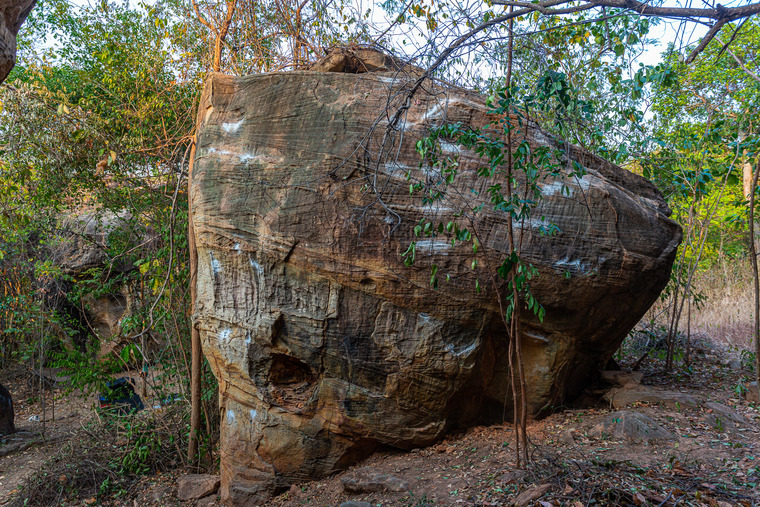Sit start at the horizontail rail at the middle of the boulder. Climb up to the right using rail crimps to top at hueco and good ledge