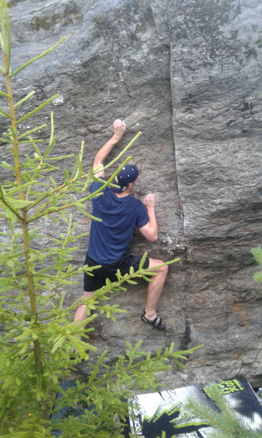 First time climbing, Sebastian having fun, in the rain!
